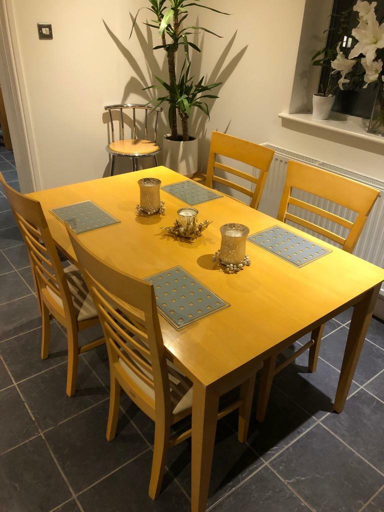 Dining table and 6 chairs | in Bearsden, Glasgow | Gumtree from i.ebayimg.com Nice dining table and chairs. Excellent condition extending dining room table and 6 chairs 2 chairs with arms chairs.size length 4ft 8ins x 3ft width x fully extended size 6ft 7 ins.£100 dresser excellent condition length 5ft 3ins x width 1ft 7ins x height 6ft 7ins inner mirrors. This site uses cookies to provide you with a great user experience. Dining chairs and dining table @ crystals morningside, durban central and cbd furniture showroom sale pop the balloon & stand a chance to win up to 40% off the floor stock hurry up well stock lost. Extending solid pine dining table and 4 chairs. Dining and living room furniture for sale, dublin. Find great deals and sell your items for free. 6 to 8 seater dining room table.