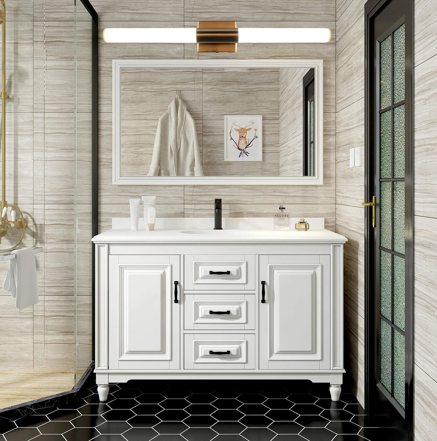 Or, you can select a vanity mirror with lights for a perfectly paired combination. D bath vanity in pearl gray with cultured marble vanity top in white with white basin. Get it as soon as tue, aug 18. Ideal for bathroom vanities or room lights, the perpetua 30 inch wall light features perforated end caps which conceal the led light strip and add design flair to the fixture *quality metal construction with a polished chrome finish and white frosted glass shades; With a clean, simple, updated vintage design, this set will modernize any bathroom decor measurements: